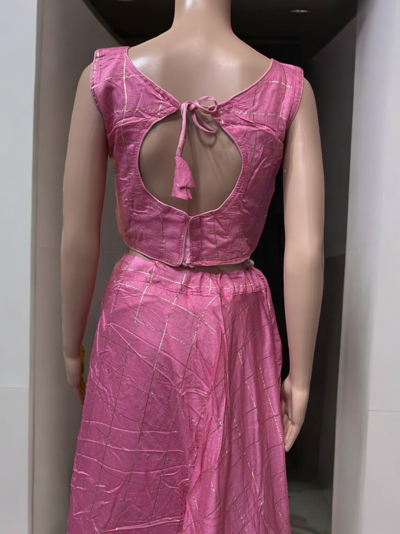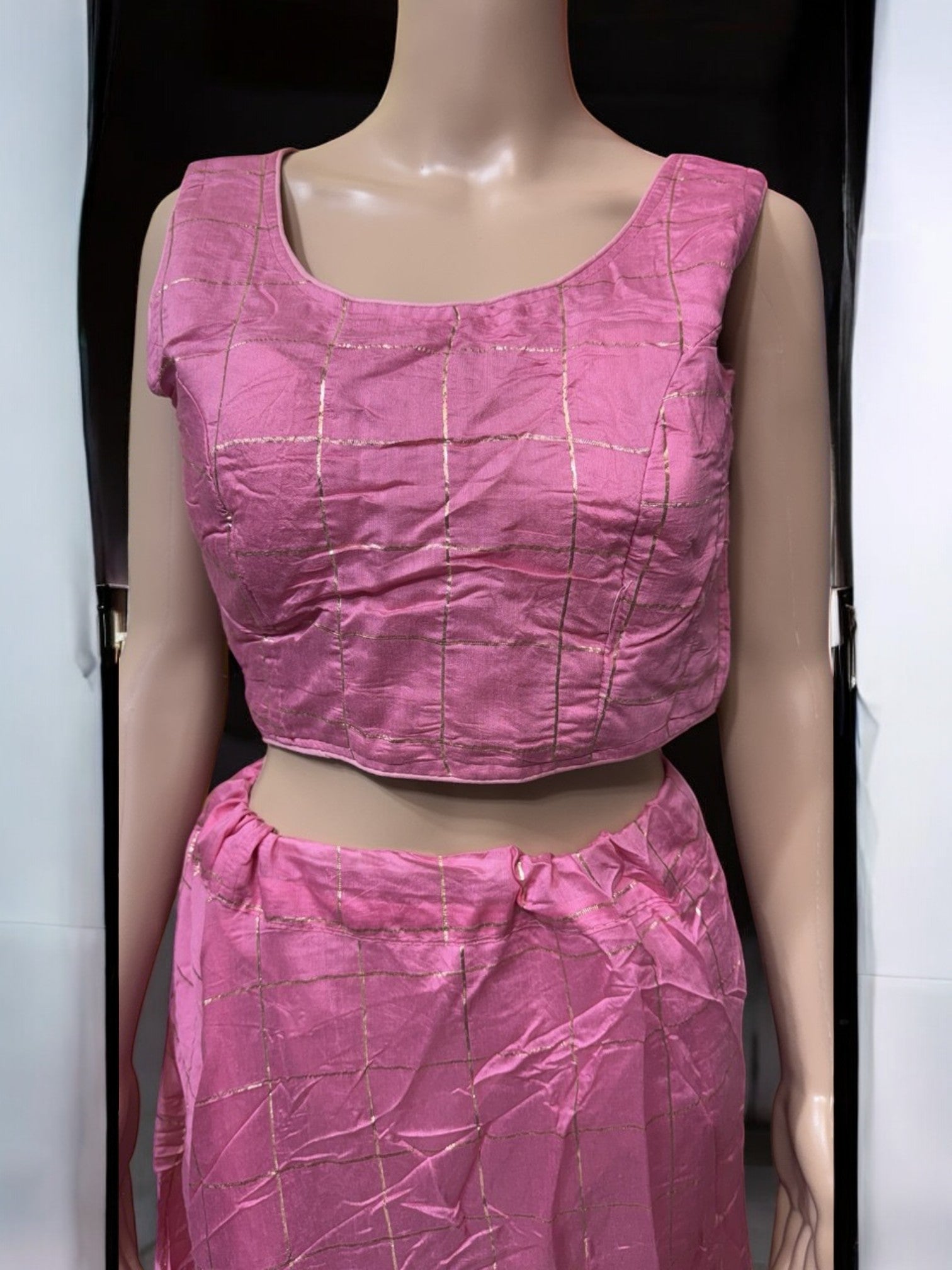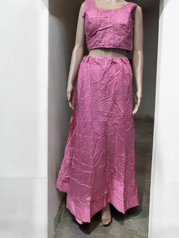 K19 - Pink Checkered Lehenga Choli Set – Sleeveless Indian Festive Wear for Diwali