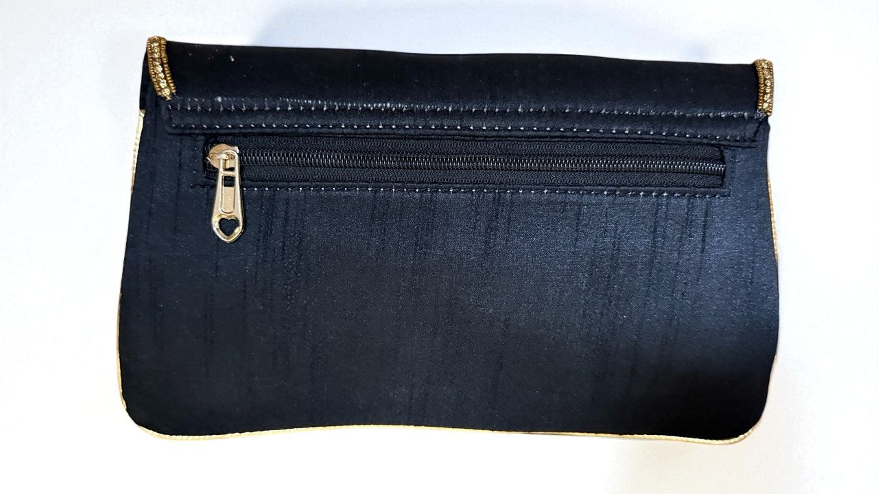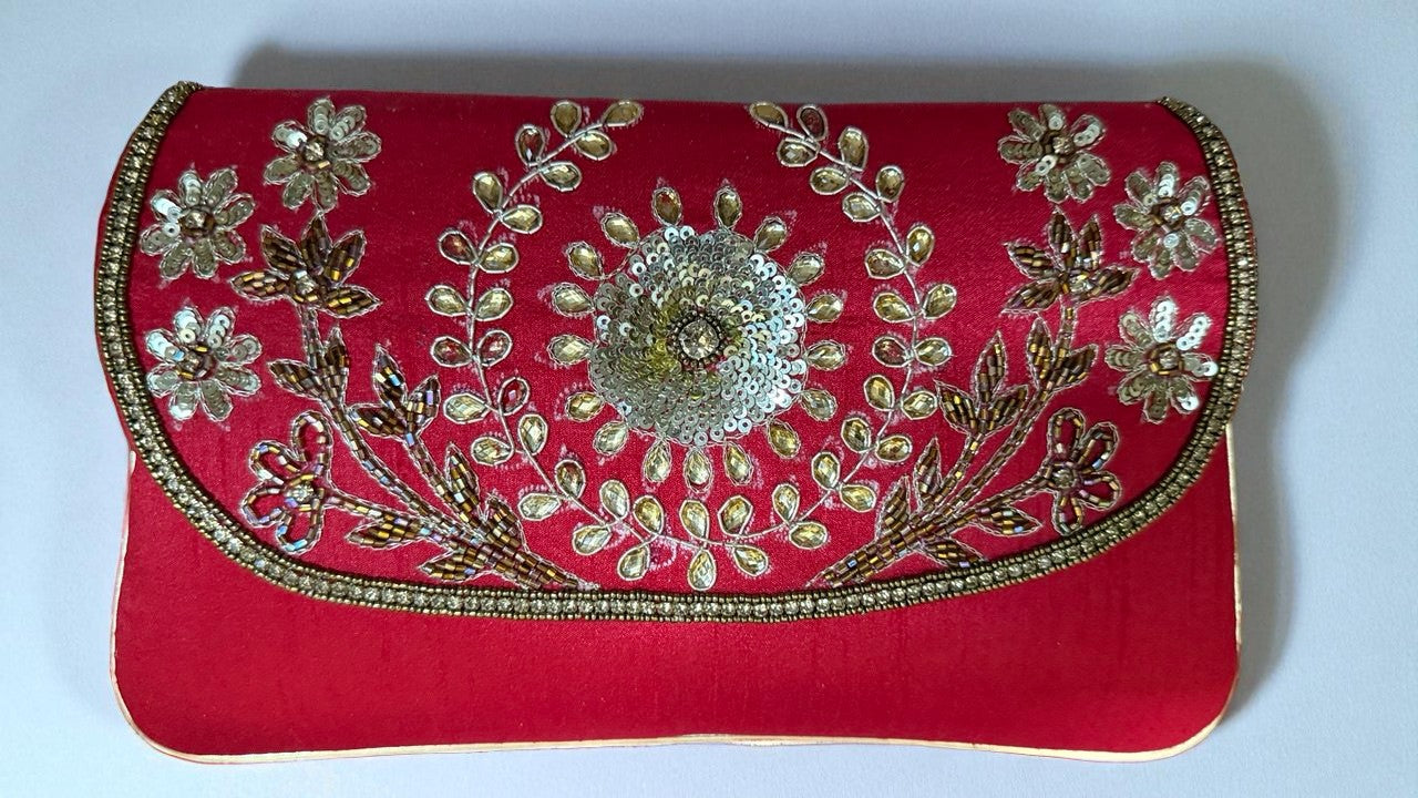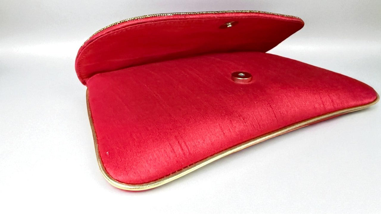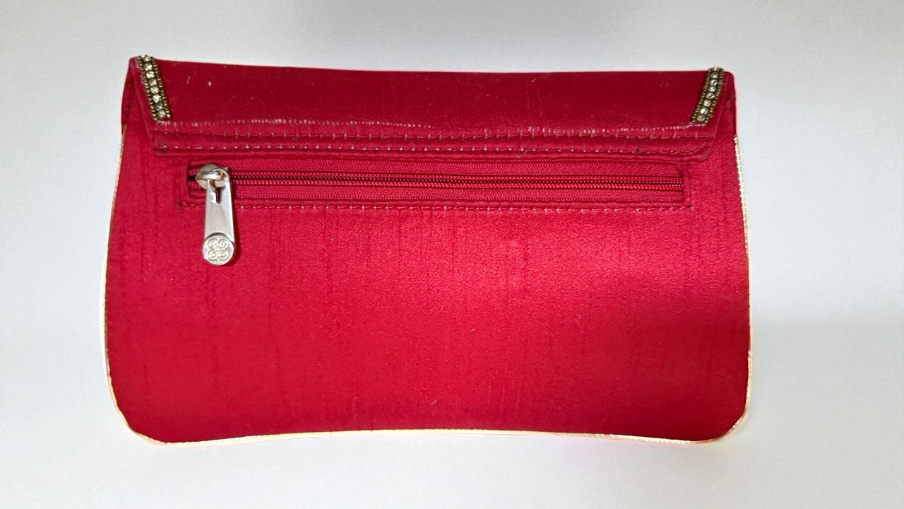 - The Maroon & Gold Bow Clutch pairs rich maroon fabric with a shimmering gold flap, finished with a chic bow and rhinestone detailing. Its dual-tone design makes it the perfect companion for weddings, parties, and celebratory evenings. -