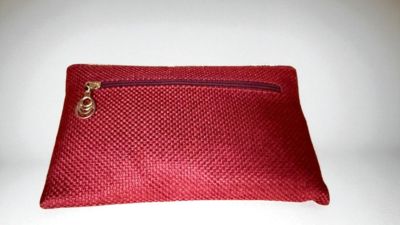 - The Red Textured Zipper Pouch is crafted from durable woven fabric with a sleek zip closure, ideal for carrying money, cards, cosmetics, or small essentials. Its simple yet stylish design makes it versatile for daily use. -