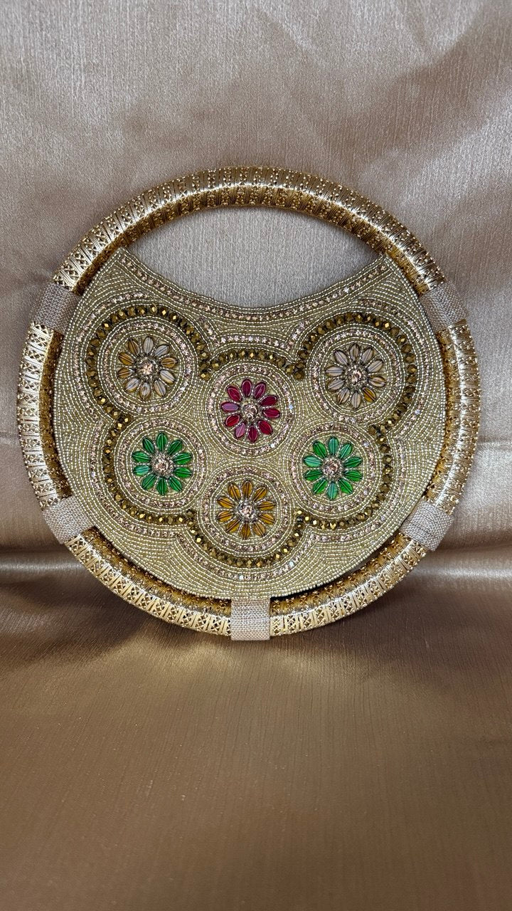 Indian Traditional hand crafted premium quality Gold Color bag  purse with stone and beads handwork. You can use this bag in wedding, haldi mehendi or festive  parties it will with any kurti...