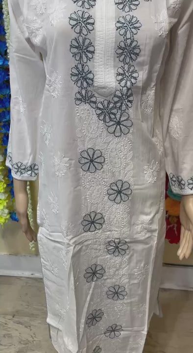 🌸 Elegant White Embroidered Kurti/Top – Floral Neckline, Long Sleeves (Top-68) Size 40 Product Highlights: Floral Neckline: This kurti/top features a beautiful floral neckline, adding a touch of elegance to your...