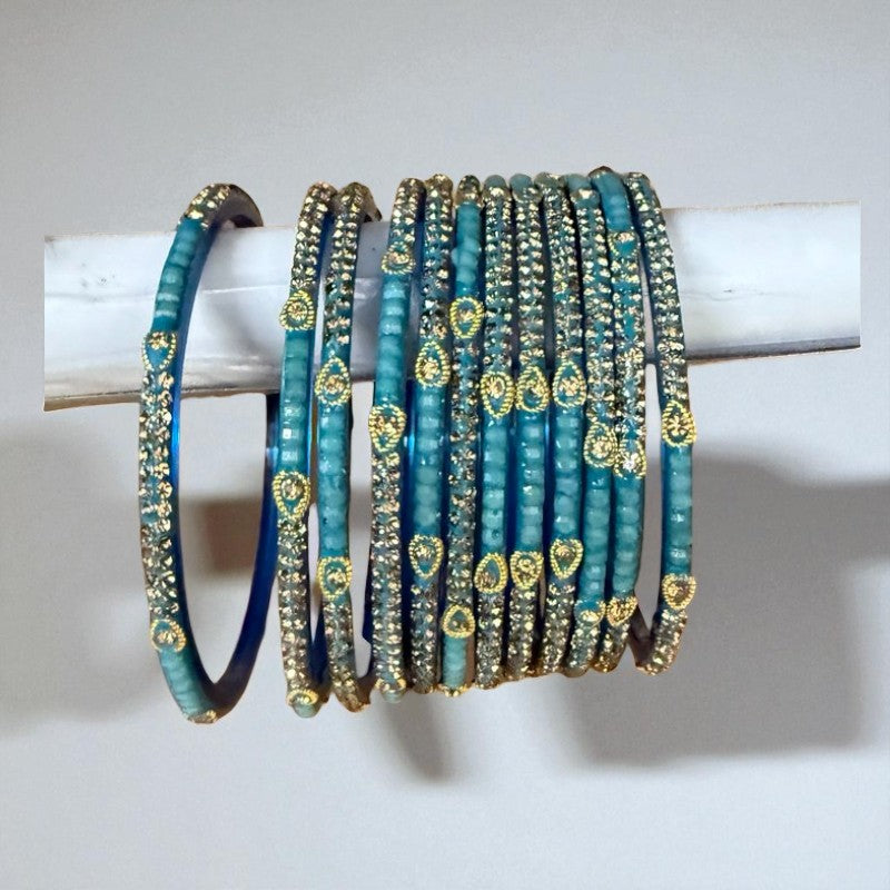 This Red Crystal & Stonework Bangle Set blends traditional charm with sparkling elegance. Crafted in a bold red base, the bangles are embellished with dazzling crystal stones and delicate golden paisley motifs, giving them a regal touch. The intricate detailing makes them perfect for bridal wear, festive occasions, or pairing with ethnic attire for an elevated look. Their vibrant red hue symbolizes love and celebration, making this set a timeless choice.