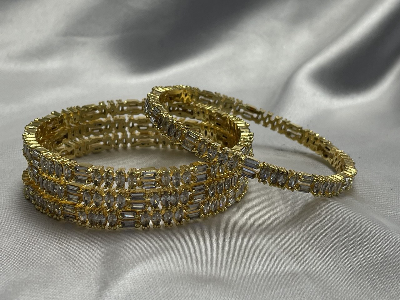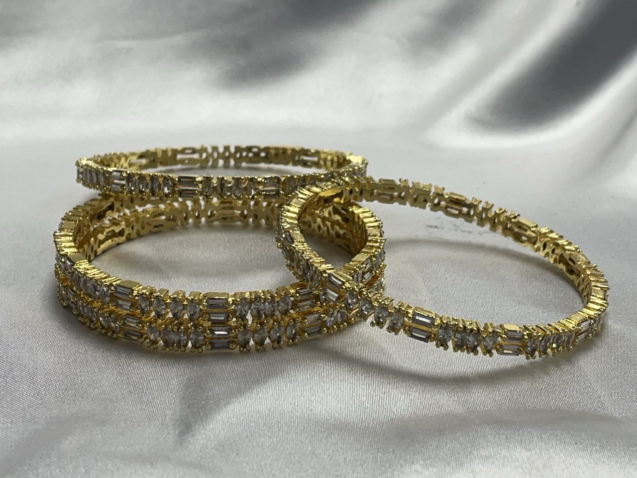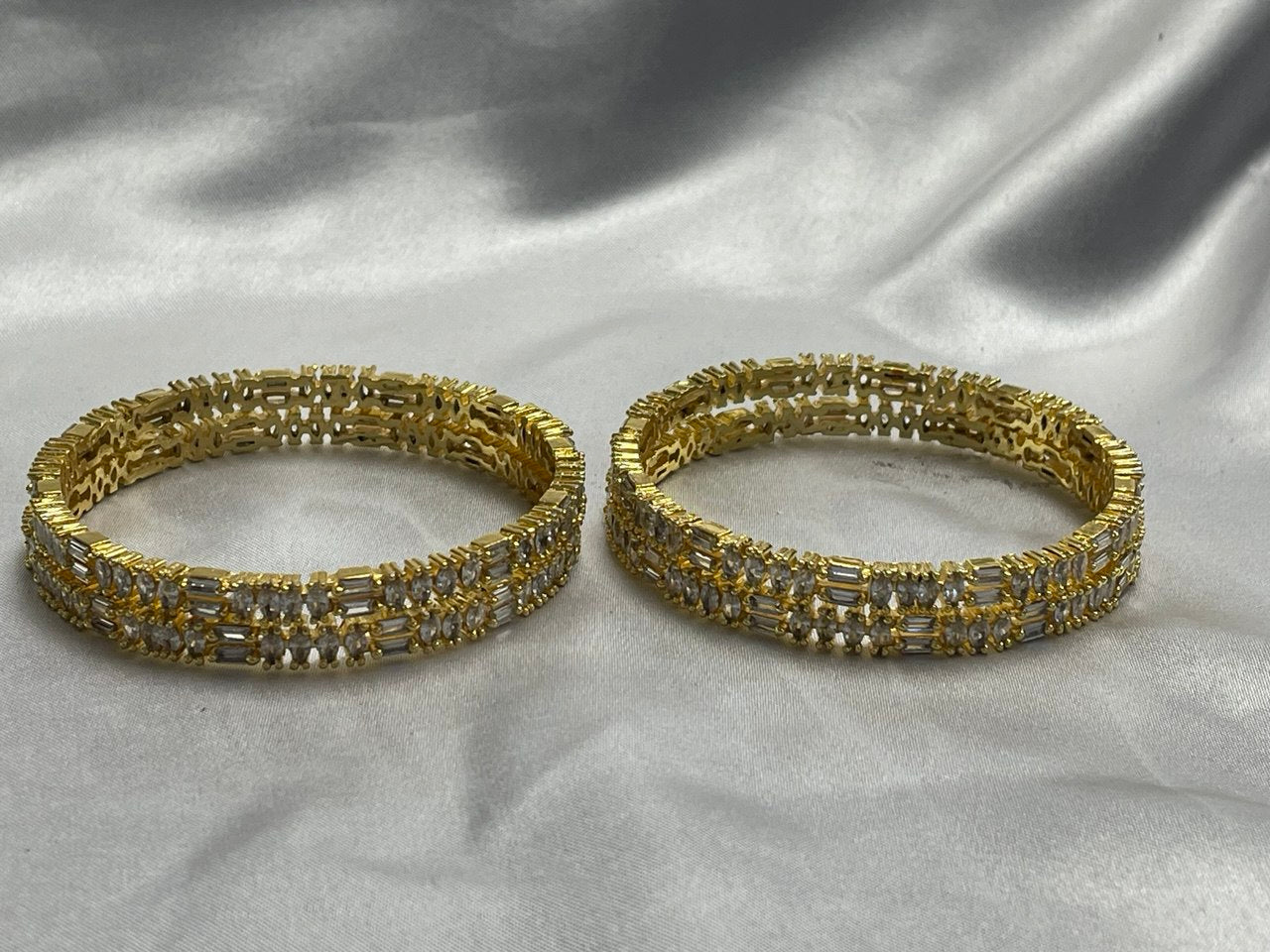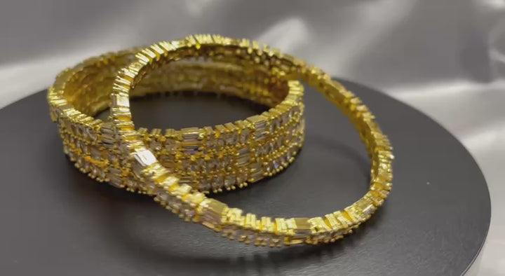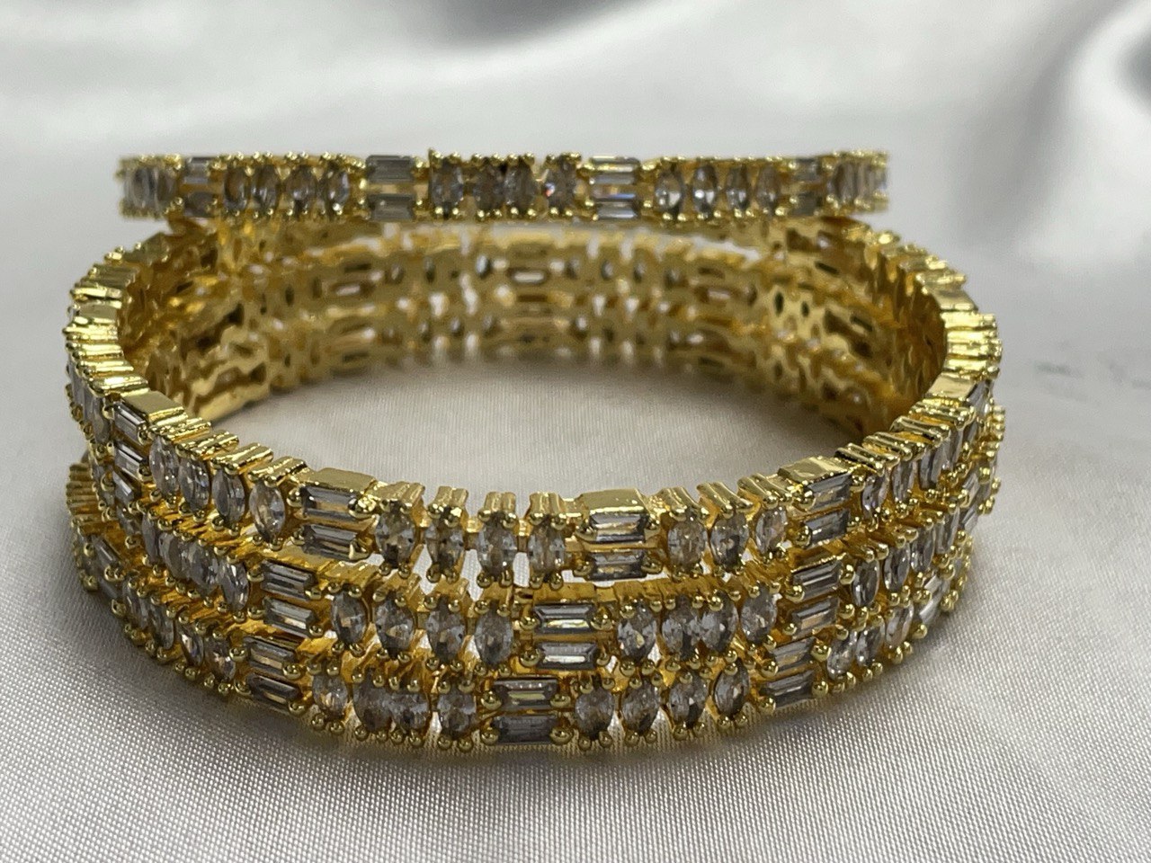 Architectural Brilliance: The alternating vertical and horizontal stone placements ensure the bangle catches the light from every angle, providing a diamond-like fire.