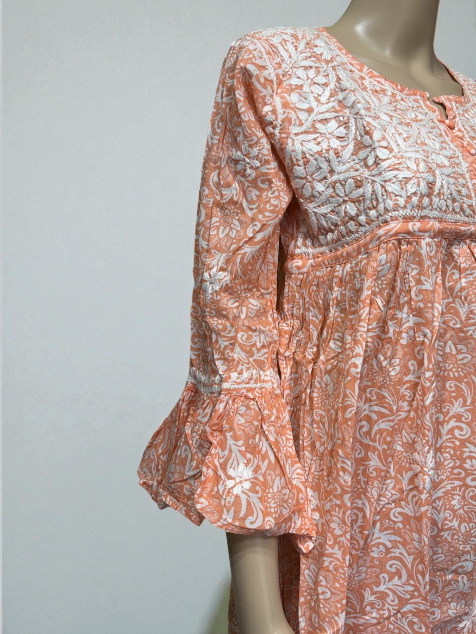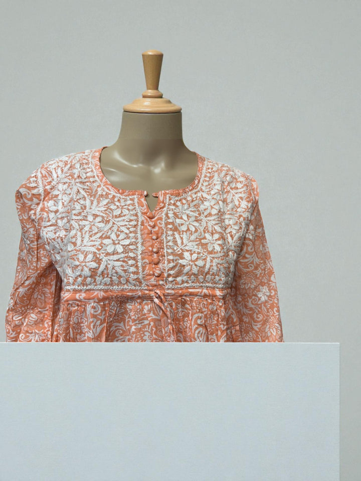 Top9 - Peach Printed Maxi Dress LUCKNOWI Gown Kurti