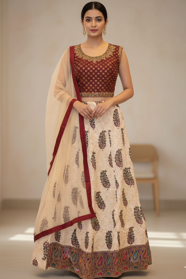 Partywear Lehenga Dress, Choli Blouse, and Net Dupatta Model 1