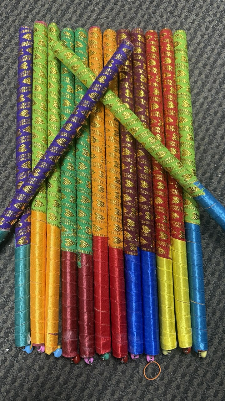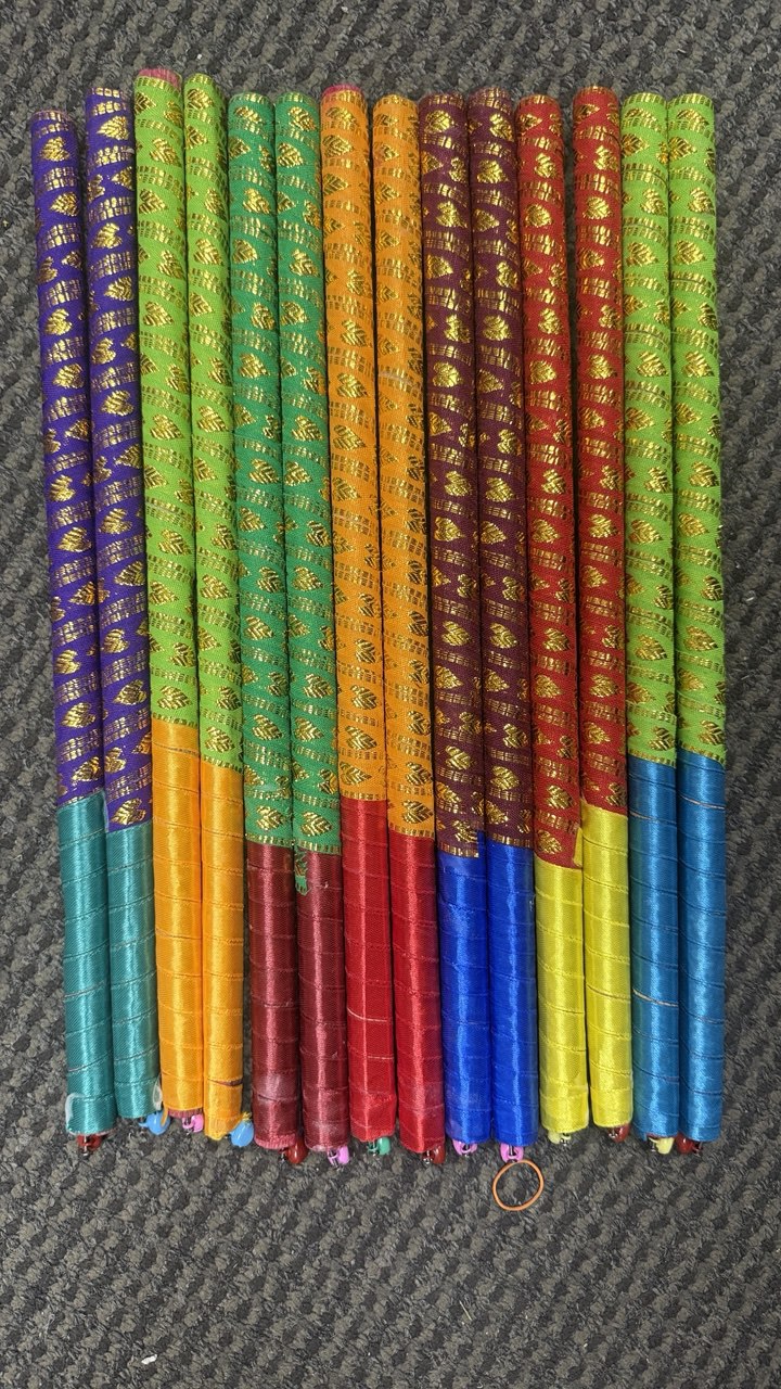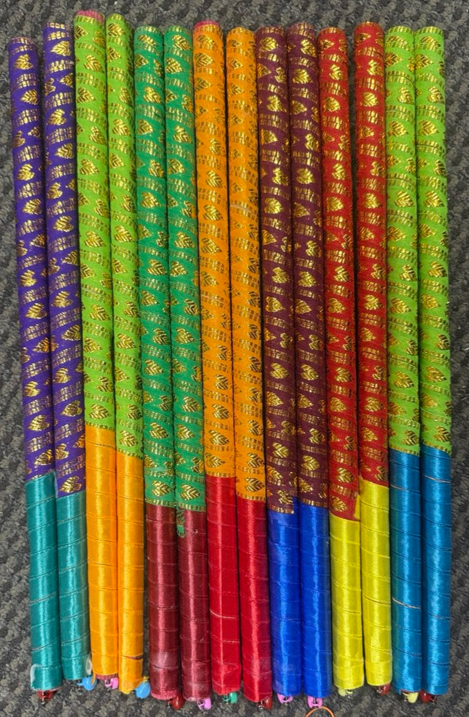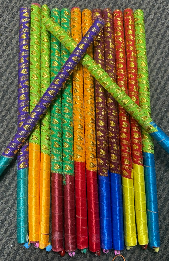 Assorted Colorful Dandiya Sticks For Navratri Wedding Dance Party Garba 15" long each stick Sold in Pairs of 2 sticks These sticks are used for dancing to the tune of garba....