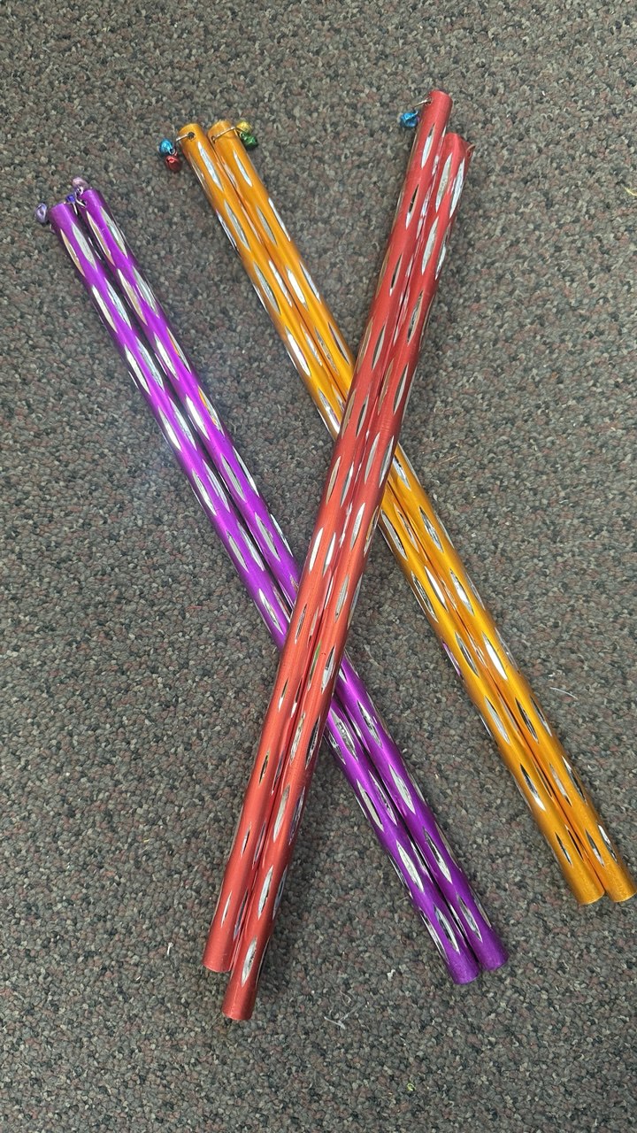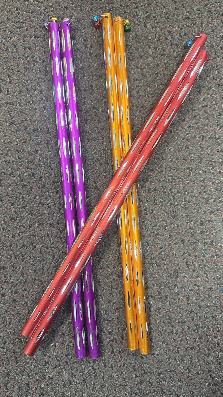 Material : Aluminum Metal very light Colors: Assorted Colors Colorful Dandiya Sticks For Navratri Wedding Dance Party Garba 14" long each stick Sold in Pairs of 2 sticks These sticks are...