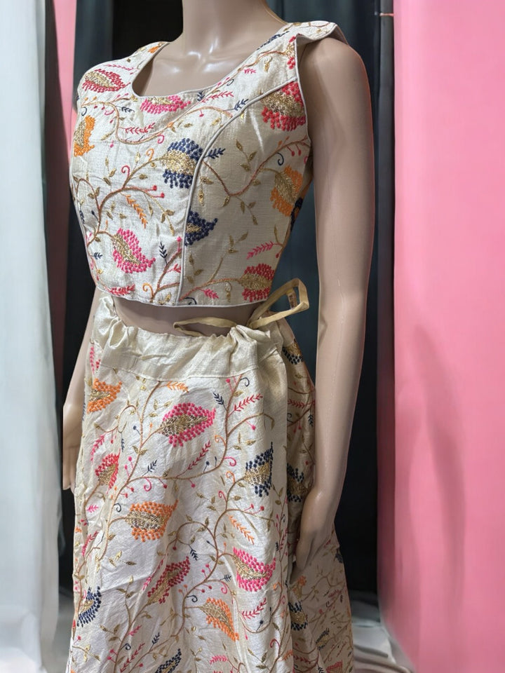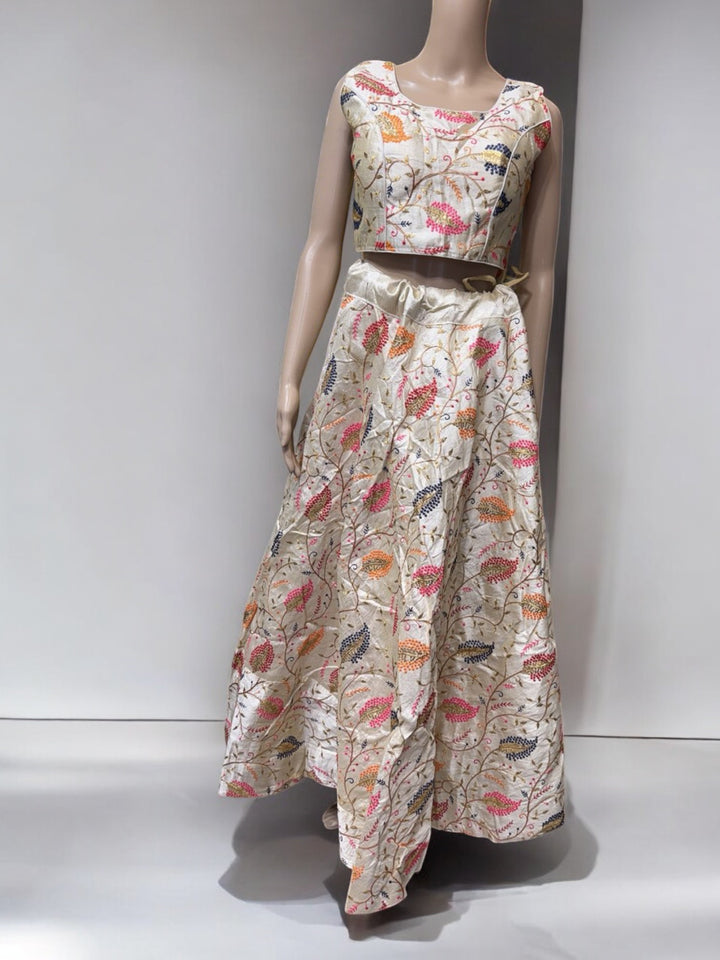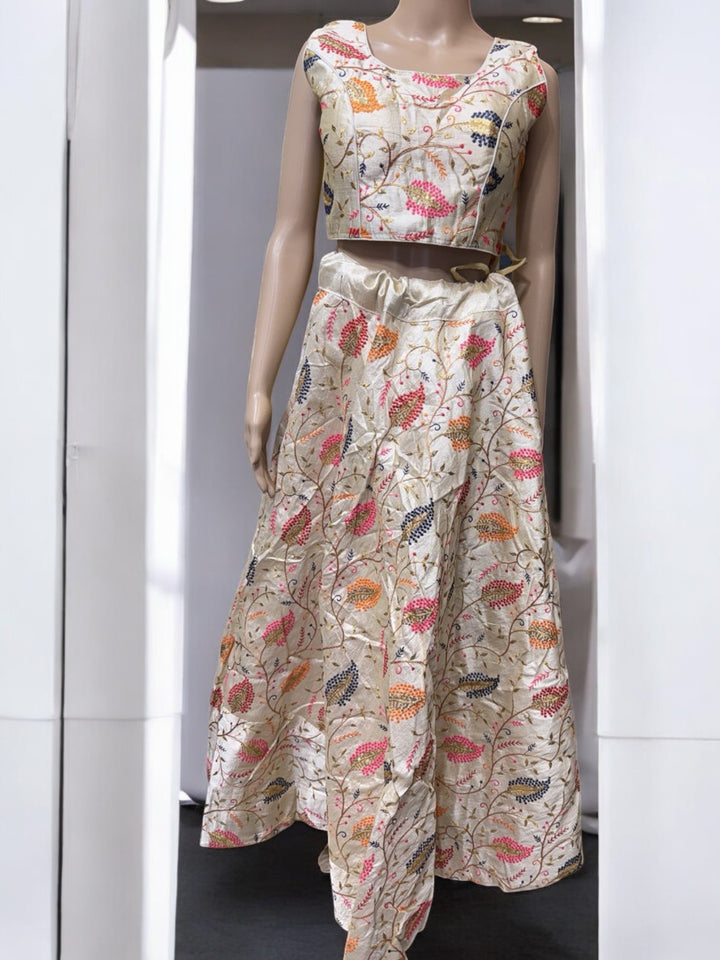 K21 - Beige Floral Embroidered Lehenga Choli Set - Indian Festive Wear for Wedding